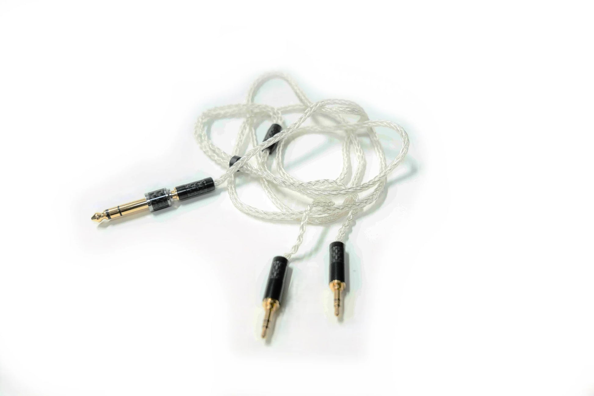 - Silver-Plated Copper Cable — 1.5 m cable using pure copper conductors plated with silver; dual 3.5 mm plugs (reversible) plus 6.35 mm adapter.